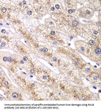 Recombinant fusion protein containing a sequence corresponding to amino acids 1-206 of human RALB (NP_002872.1).