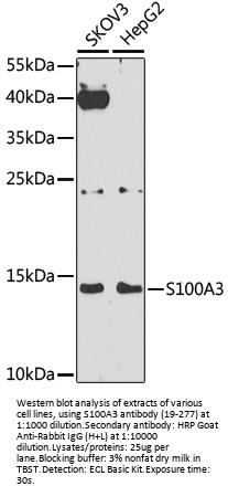 Recombinant fusion protein containing a sequence corresponding to amino acids 1-101 of human S100A3 (NP_002951.1).