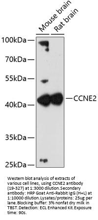 A synthetic peptide corresponding to a sequence within amino acids 300 to the C-terminus of human CCNE2 (NP_477097.1).