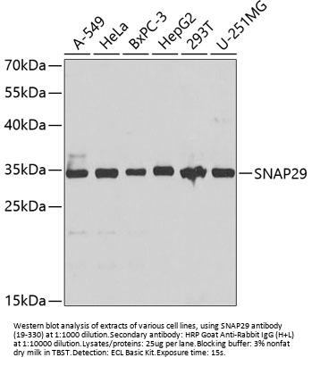Recombinant fusion protein containing a sequence corresponding to amino acids 1-258 of human SNAP29 (NP_004773.1).
