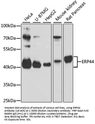 Recombinant fusion protein containing a sequence corresponding to amino acids 57-406 of human ERP44 (NP_055866.1).