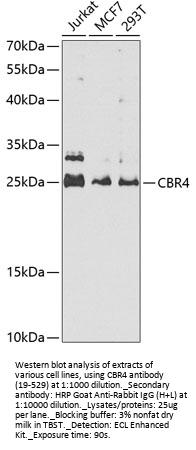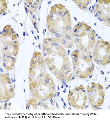 Recombinant fusion protein containing a sequence corresponding to amino acids 1-237 of human CBR4 (NP_116172.2).