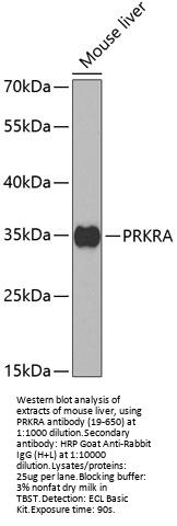 Recombinant fusion protein containing a sequence corresponding to amino acids 1-313 of human PRKRA (NP_003681.1).