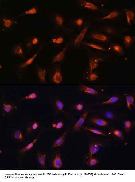 Recombinant fusion protein containing a sequence corresponding to amino acids 1-120 of human RIP3 (NP_006862.2).
