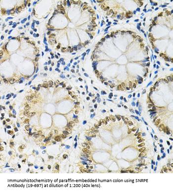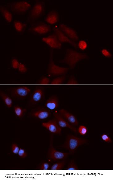Recombinant fusion protein containing a sequence corresponding to amino acids 1-92 of human SNRPE (NP_003085.1).