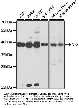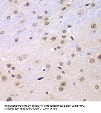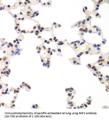 Recombinant fusion protein containing a sequence corresponding to amino acids 1-336 of human RNF2 (NP_009143.1).