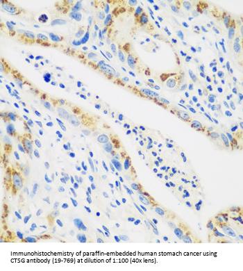 Recombinant fusion protein containing a sequence corresponding to amino acids 21-255 of human CTSG (NP_001902.1).
