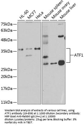 Recombinant fusion protein containing a sequence corresponding to amino acids 1-210 of human ATF1 (NP_005162.1).