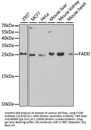 The protein encoded by this gene is an adaptor molecule that interacts with various cell surface receptors and mediates cell apoptotic signals. Through its C-terminal death domain, this protein can be recruited by TNFRSF6/Fas-receptor, tumor necrosis factor receptor, TNFRSF25, and TNFSF10/TRAIL-receptor, and thus it participates in the death signaling initiated by these receptors. Interaction of this protein with the receptors unmasks the N-terminal effector domain of this protein, which allows it to recruit caspase-8, and thereby activate the cysteine protease cascade. Knockout studies in mice also suggest the importance of this protein in early T cell development.