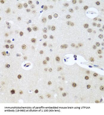 Recombinant fusion protein containing a sequence corresponding to amino acids 1-260 of human UTP14A (NP_006640.2).