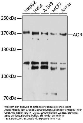 Recombinant fusion protein containing a sequence corresponding to amino acids 400-700 of human AQR (NP_055506.1).
