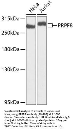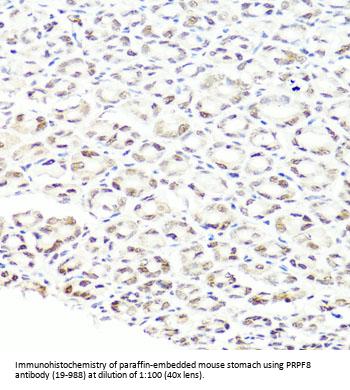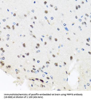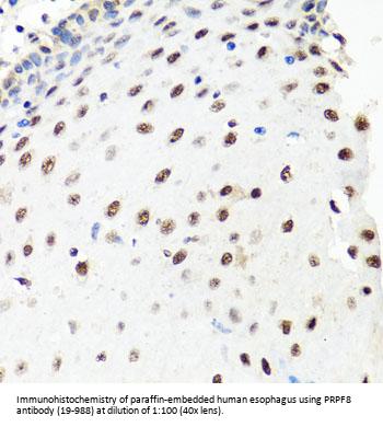 A synthetic peptide corresponding to a sequence within amino acids 1-100 of human PRPF8 (NP_006436.3).