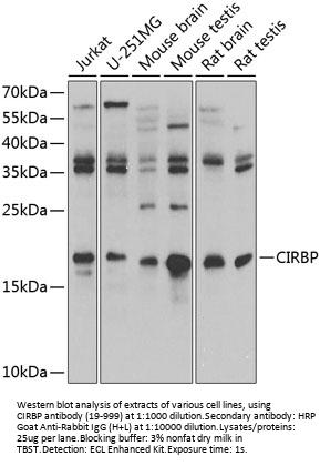 Recombinant fusion protein containing a sequence corresponding to amino acids 1-172 of human CIRBP (NP_001271.1).