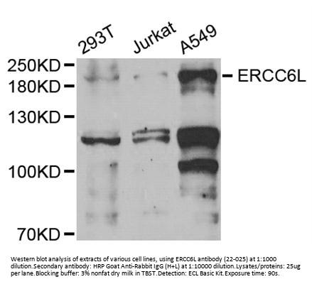 A synthetic peptide corresponding to a sequence within amino acids 300-400 of human ERCC6L (NP_060139.2).