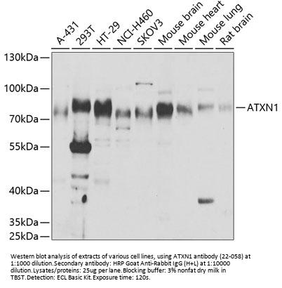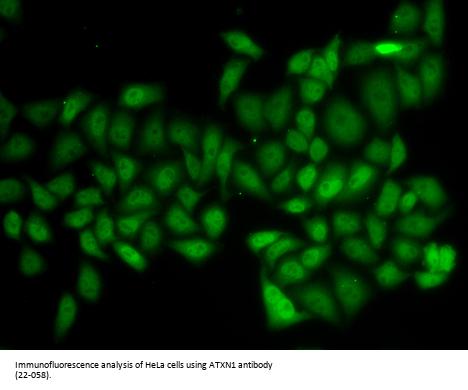 Recombinant fusion protein containing a sequence corresponding to amino acids 586-815 of human ATXN1 (NP_001121636.1).