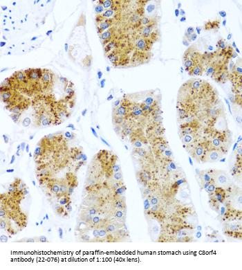 Recombinant fusion protein containing a sequence corresponding to amino acids 1-106 of human C8orf4 (NP_064515.1).