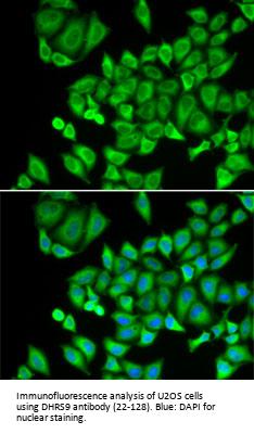Recombinant fusion protein containing a sequence corresponding to amino acids 18-319 of human DHRS9 (NP_001135743.1).