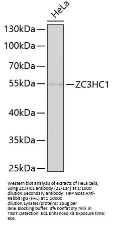 Recombinant fusion protein containing a sequence corresponding to amino acids 1-260 of human ZC3HC1 (NP_057562.3).