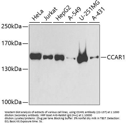 Recombinant fusion protein containing a sequence corresponding to amino acids 1-200 of human CCAR1 (NP_060707.2).