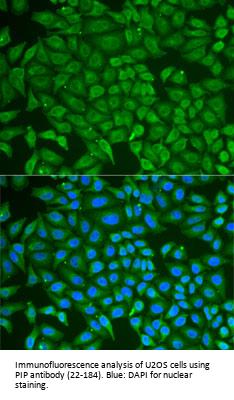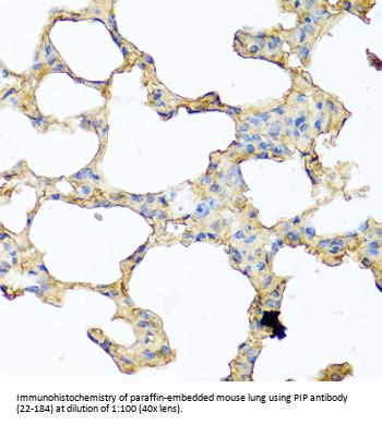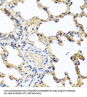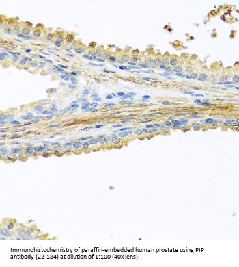 Recombinant fusion protein containing a sequence corresponding to amino acids 29-146 of human PIP (NP_002643.1).