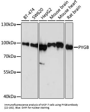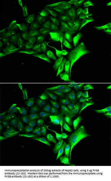 Recombinant fusion protein containing a sequence corresponding to amino acids 544-843 of human PYGB (NP_002853.2).