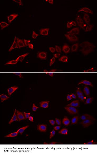 Recombinant fusion protein containing a sequence corresponding to amino acids 10-220 of human NRBF2 (NP_110386.2).