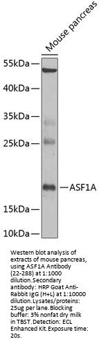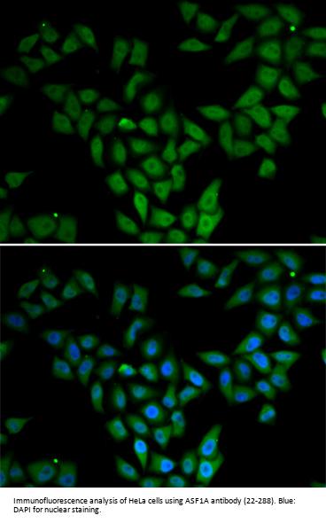 Recombinant fusion protein containing a sequence corresponding to amino acids 1-204 of human ASF1A (NP_054753.1).
