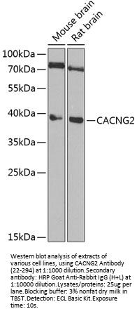 Recombinant fusion protein containing a sequence corresponding to amino acids 204-323 of human CACNG2 (NP_006069.1).