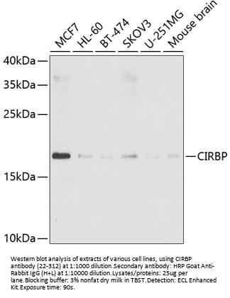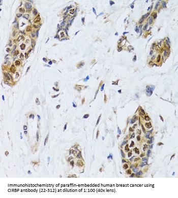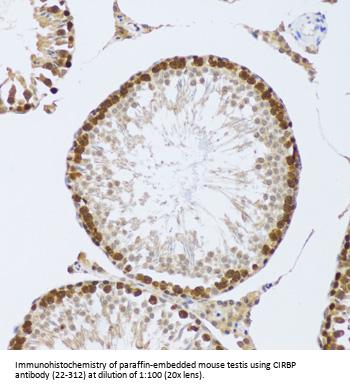 Recombinant fusion protein containing a sequence corresponding to amino acids 1-172 of human CIRBP (NP_001271.1).