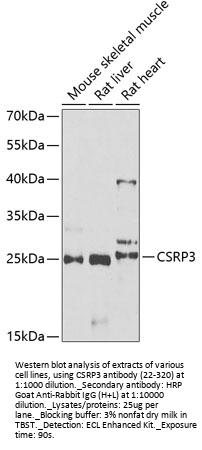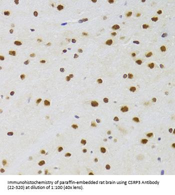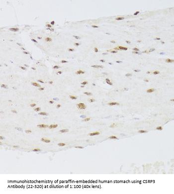 Recombinant fusion protein containing a sequence corresponding to amino acids 1-194 of human CSRP3 (NP_003467.1).