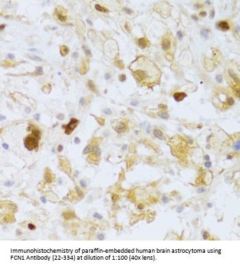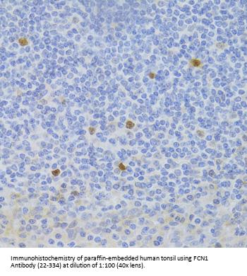 The ficolin family of proteins are characterized by the presence of a leader peptide, a short N-terminal segment, followed by a collagen-like region, and a C-terminal fibrinogen-like domain. The collagen-like and the fibrinogen-like domains are also found separately in other proteins such as complement protein C1q, C-type lectins known as collectins, and tenascins. However, all these proteins recognize different targets, and are functionally distinct. Ficolin 1 encoded by FCN1 is predominantly expressed in the peripheral blood leukocytes, and has been postulated to function as a plasma protein with elastin-binding activity.