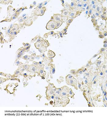 Recombinant fusion protein containing a sequence corresponding to amino acids 949-1228 of human MMRN1 (NP_031377.2).
