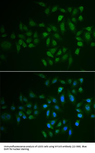 Recombinant fusion protein containing a sequence corresponding to amino acids 1-240 of human MYLK3 (NP_872299.2).