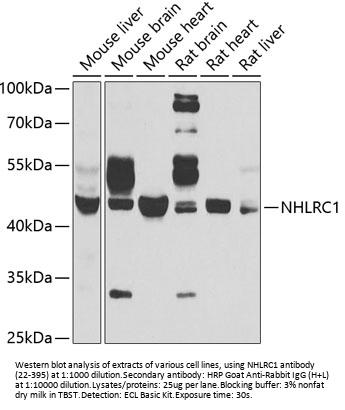 Recombinant fusion protein containing a sequence corresponding to amino acids 1-280 of human NHLRC1 (NP_940988.2).