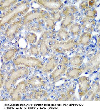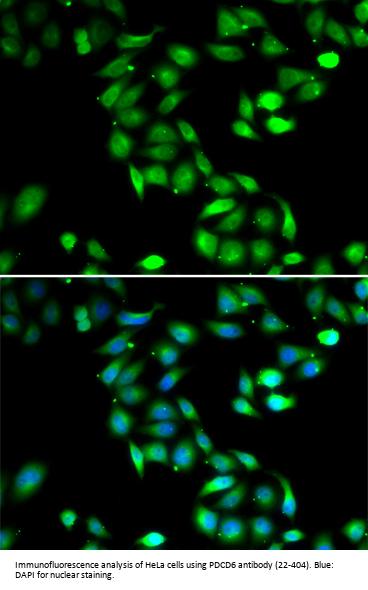 Recombinant fusion protein containing a sequence corresponding to amino acids 1-191 of human PDCD6 (NP_037364.1).