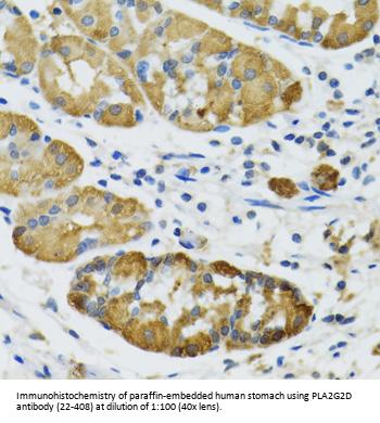 Recombinant fusion protein containing a sequence corresponding to amino acids 21-145 of human PLA2G2D (NP_036532.1).