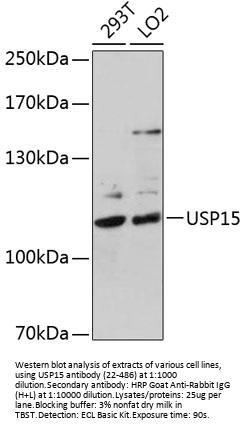 Recombinant fusion protein containing a sequence corresponding to amino acids 852-952 of human USP15 (NP_006304.1).