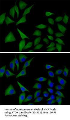 Recombinant fusion protein containing a sequence corresponding to amino acids 1-68 of human ATOX1 (NP_004036.1).