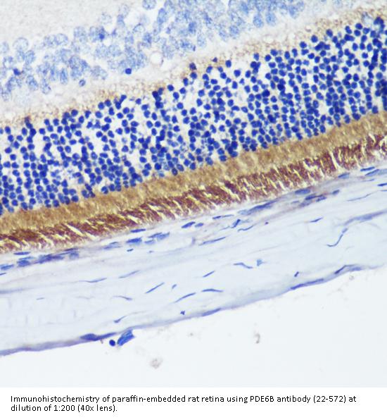 Photon absorption triggers a signaling cascade in rod photoreceptors that activates cGMP phosphodiesterase (PDE), resulting in the rapid hydrolysis of cGMP, closure of cGMP-gated cation channels, and hyperpolarization of the cell. PDE is a peripheral membrane heterotrimeric enzyme made up of alpha, beta, and gamma subunits. This gene encodes the beta subunit. Mutations in this gene result in retinitis pigmentosa and autosomal dominant congenital stationary night blindness. Multiple transcript variants encoding different isoforms have been found for this gene.