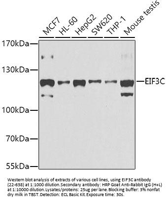 Recombinant fusion protein containing a sequence corresponding to amino acids 694-913 of human EIF3C (NP_003743.1).