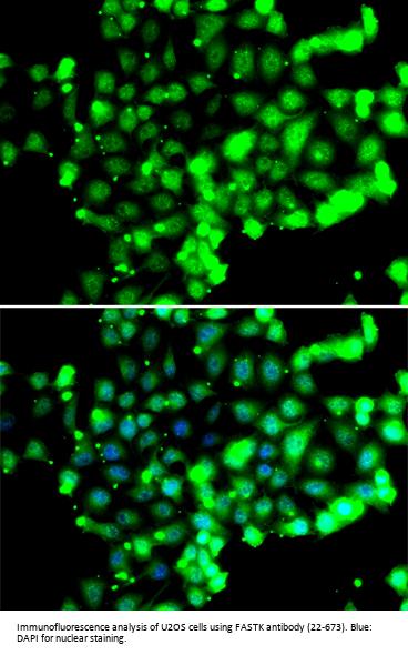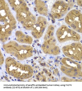Recombinant fusion protein containing a sequence corresponding to amino acids 360-549 of human FASTK (NP_006703.1).