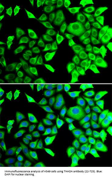 Recombinant fusion protein containing a sequence corresponding to amino acids 1684-1953 of human THADA (NP_071348.3).