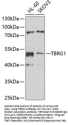 Recombinant fusion protein containing a sequence corresponding to amino acids 22-150 of human TBRG1 (NP_116200.2).