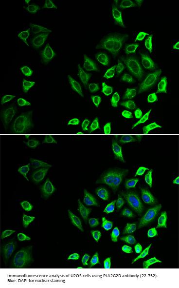 Recombinant fusion protein containing a sequence corresponding to amino acids 21-145 of human PLA2G2D (NP_036532.1).