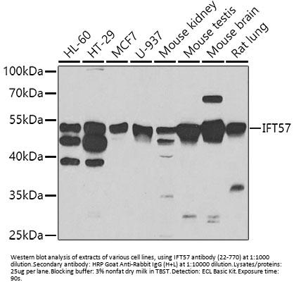 Recombinant fusion protein containing a sequence corresponding to amino acids 170-429 of human IFT57 (NP_060480.1).
