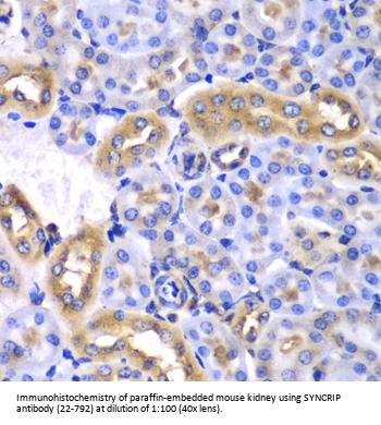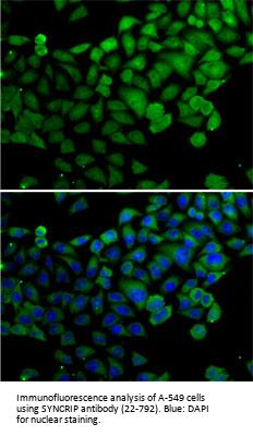 Recombinant fusion protein containing a sequence corresponding to amino acids 1-200 of human SYNCRIP (NP_001153146.1).