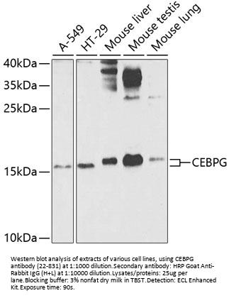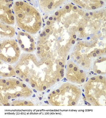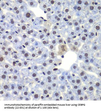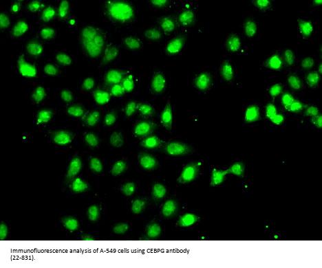 Recombinant fusion protein containing a sequence corresponding to amino acids 1-150 of human CEBPG (NP_001797.1).