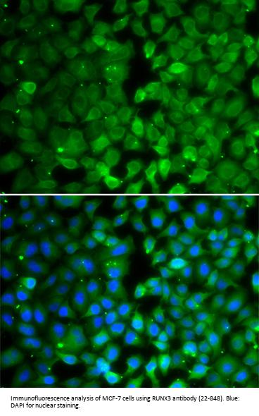 Recombinant fusion protein containing a sequence corresponding to amino acids 210-429 of human RUNX3 (NP_001026850.1).