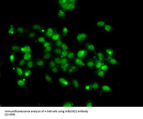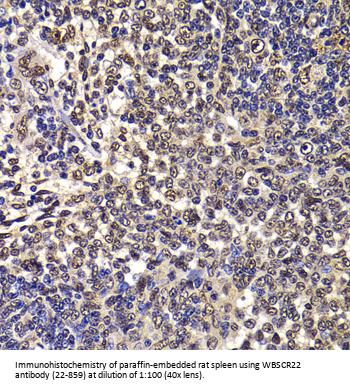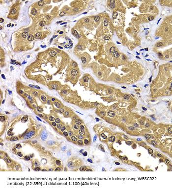 Recombinant fusion protein containing a sequence corresponding to amino acids 1-281 of human WBSCR22 (NP_059998.2).