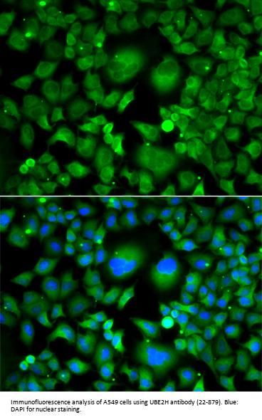 Recombinant fusion protein containing a sequence corresponding to amino acids 1-183 of human UBE2H (NP_003335.1).